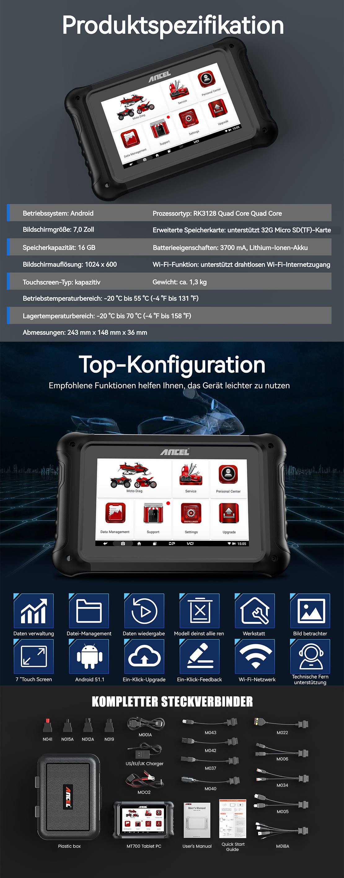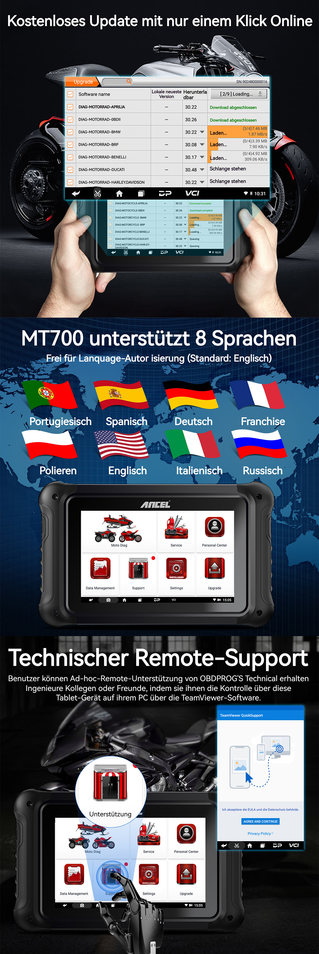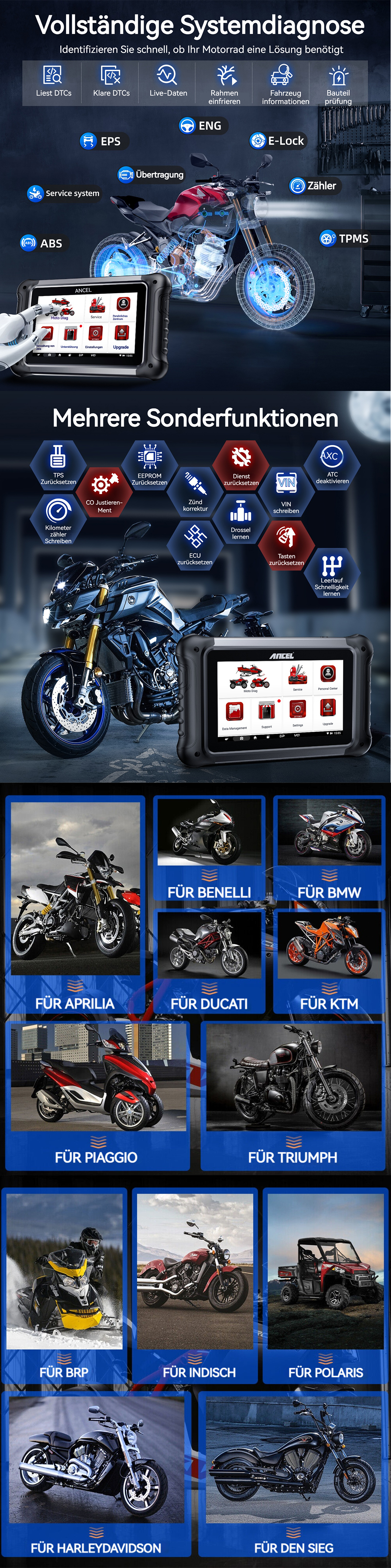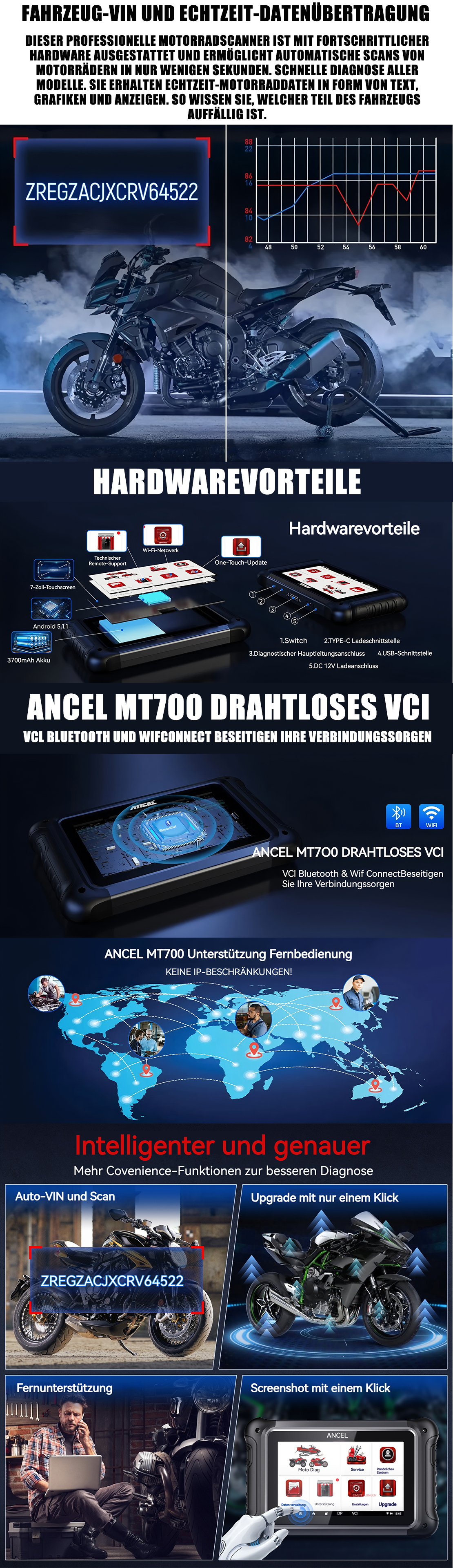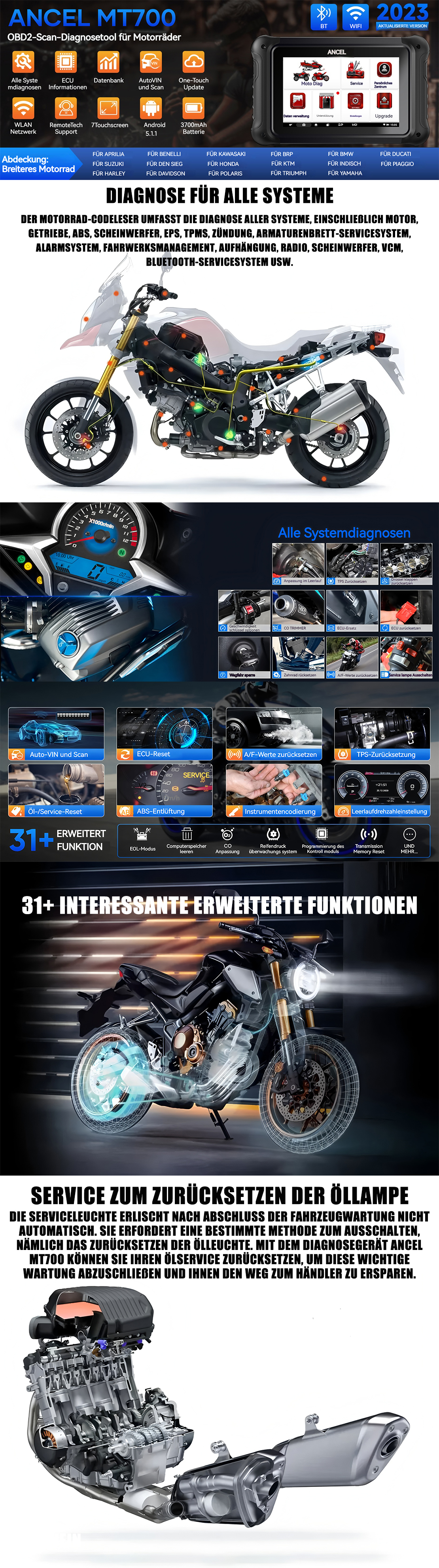 ANCEL MT700 Motorrad-Diagnosegerät, OBD2-Scanner, ABS, TPMS, EBS, ECU